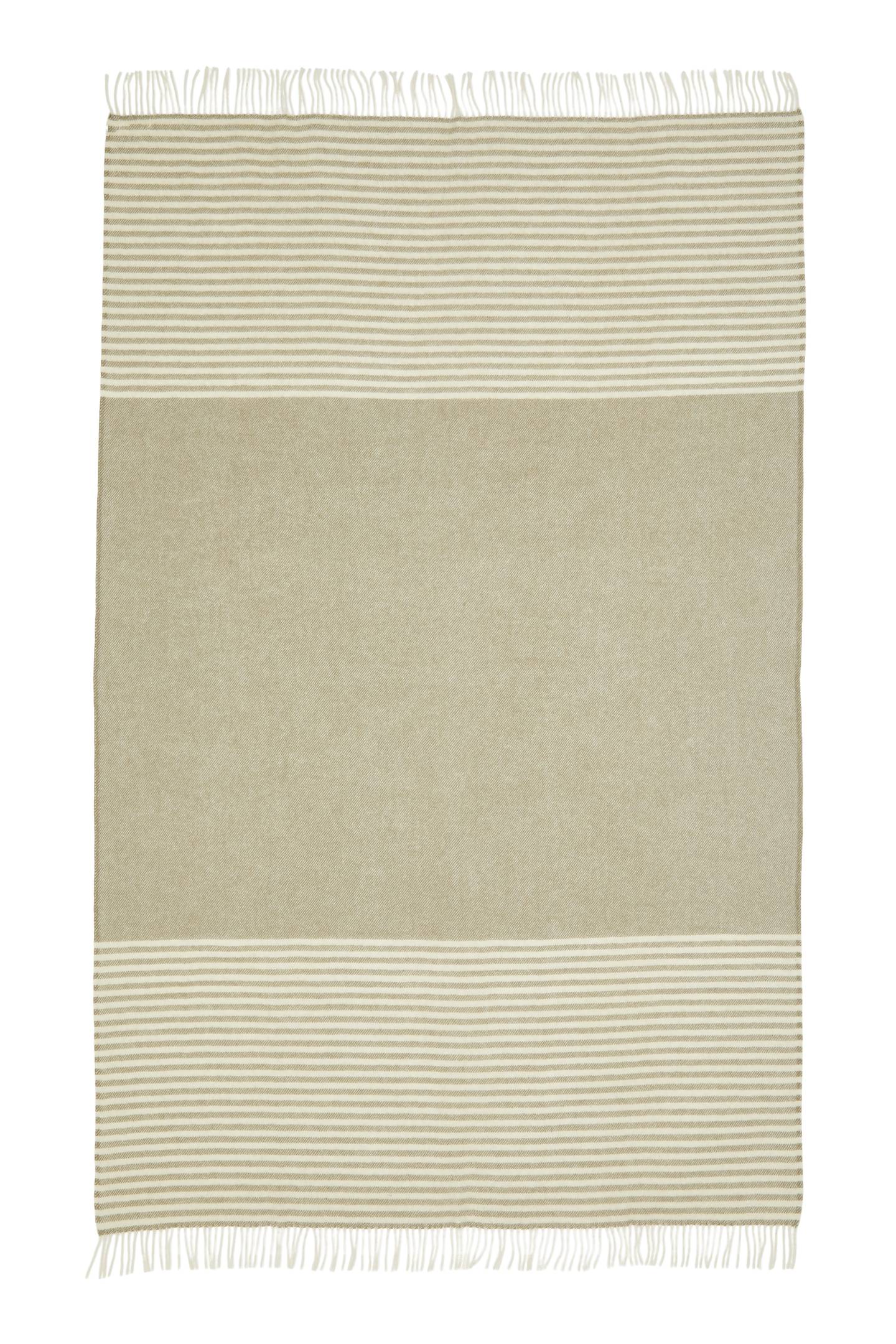 Flot stribet norsk uldplaid i skønne farver af nordic green & naturfarvet af 100% Skandinavisk uld fra Silkeborg Uldspinderi. Size 130 x 200 cm.