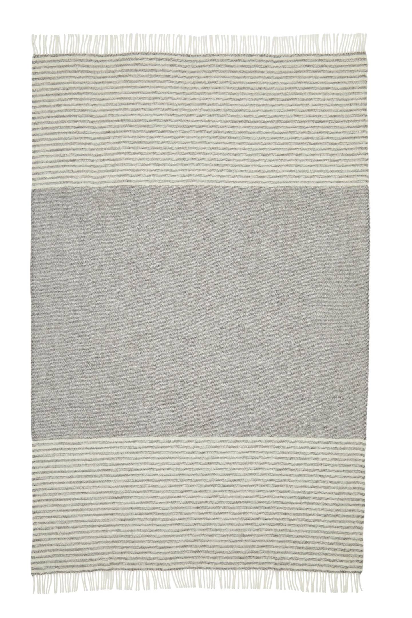 Flot stribet norsk uldplaid i skønne farver af nordic grey & naturfarvet af 100% Skandinavisk uld fra Silkeborg Uldspinderi. Size 130 x 200 cm.